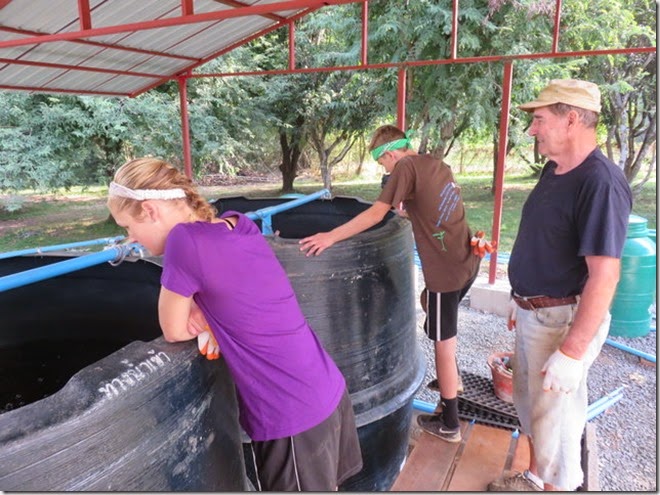 In addition to spending time with the kids at the Boys’ and Girls’ homes and having some Thai cultural experiences, on 2 of our days we also had the opportunity to put on our “grubbies”, roll up our sleeves, and work alongside the Thai construction crew in building the new boys’ home. This would become the new home for the boys we had played with and grown attached to on our first home visit on our very first day. The goal is to have all 4 Children’s Homes on the same expanse of property. This construction would be the 3rd of the Childrens’ Homes completed on the property, and would bring those boys over from their current property to be near the Girls’ Home and the Boys’ Home that were completed before theirs. Mike took us to the construction site and left us in very good hands with Bud, our guide and “Go To” person for our work days. Bud is a former cabinet-maker from Oregon…a spunky “Grandpa” figure to the kids with a generous soul who found his calling here in Thailand, using his gifts and resourceful talents to cultivate sustainable projects on the property -- everything from agricultural projects and aquaponics, to assistance in some of the construction and maintenance projects.